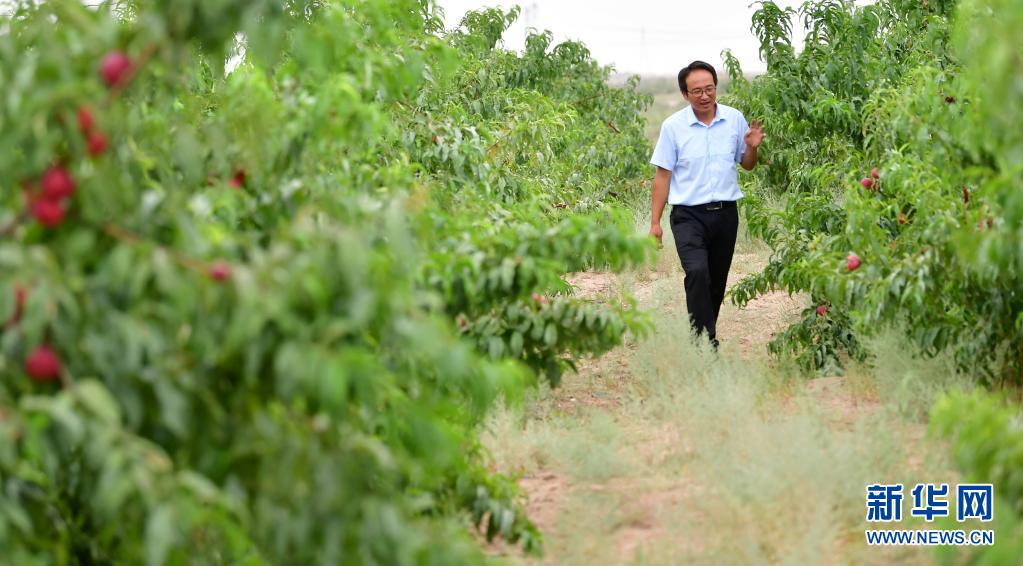 8月18日,方志利在查看桃子生长情况。新华社记者 陈斌 摄