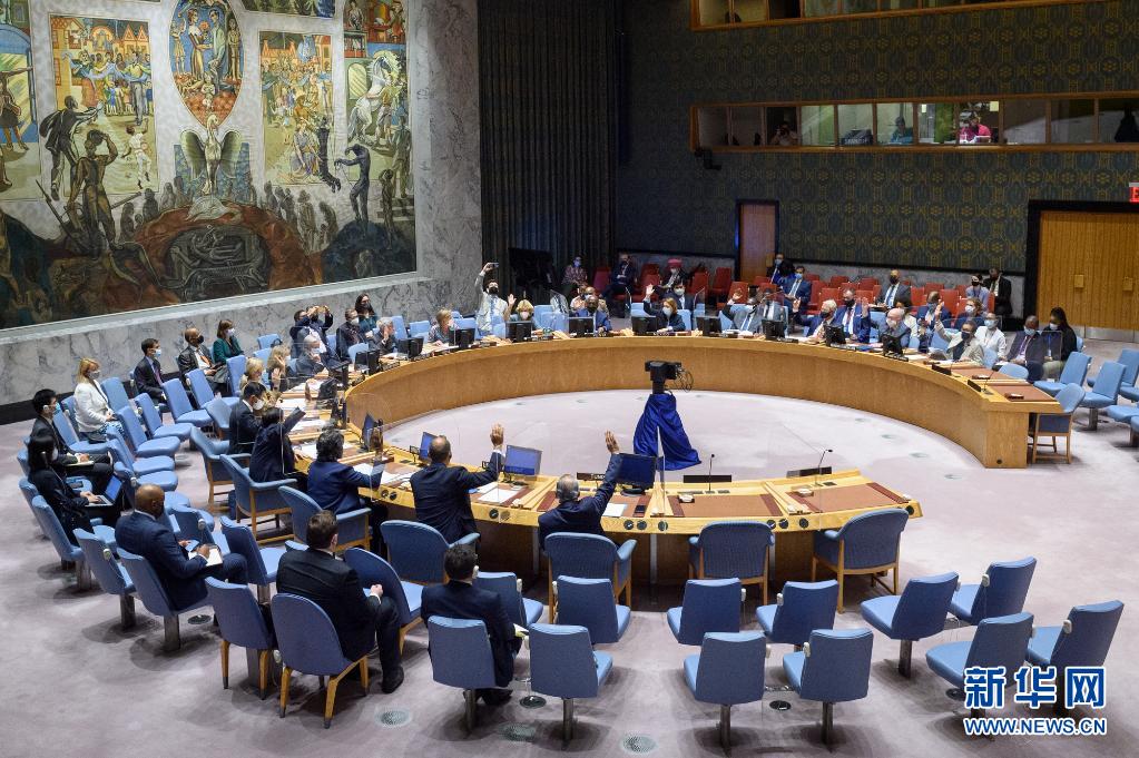 8月18日,在位于纽约的联合国总部,安理会表决通过第2589号决议。新华社发(联合国供图/洛伊·费利佩摄)