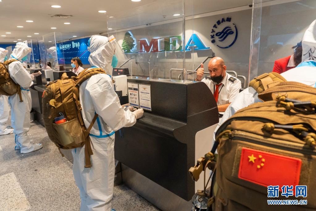 8月18日,在黎巴嫩贝鲁特拉菲克·哈里里国际机场,中国第19批赴黎维和官兵办理手续。新华社发(刘攀 摄)