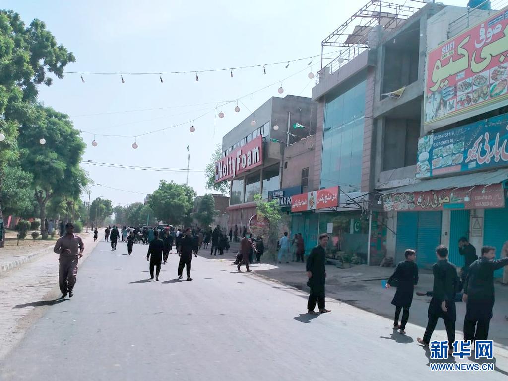 8月19日,人们聚在巴基斯坦旁遮普省巴哈瓦尔讷格尔地区的爆炸现场(手机照片)。巴基斯坦政府官员19日说,巴东部旁遮普省当天发生一起手榴弹袭击事件,造成至少5人死亡、30人受伤。新华社发