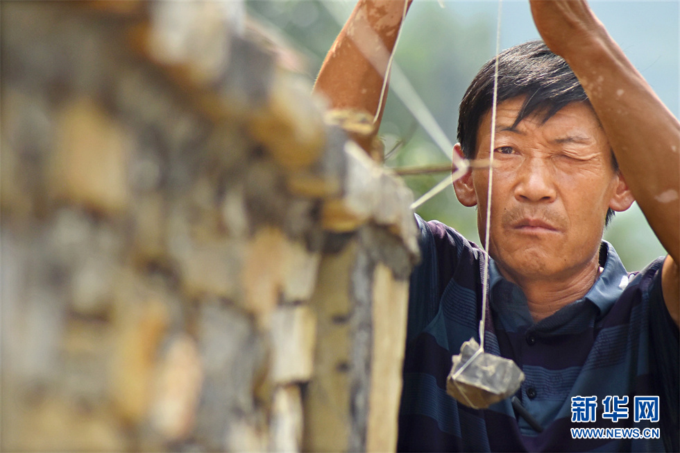 短短两年多的时间,这个仅有158户、400余口人的小山村,全村累计投入义务工达5000多个。两年多的时间,冯成文带领村里的群众用不足百万的投入,完成了预算300多万元的建设工程,使一个集 “美景、美食、美宿”于一体的旅游特色村初现。目前,该村已建设起精品民宿28间,并开始投入营业,村集体也每年有了近30万元的经济收入。冯成文说,看着山村一点点的在变美,我这个泥瓦匠角色当得值!这个泥瓦匠角色我要一直干下去,把我们的山村建设的更美丽。新华网发(赵东山 摄)