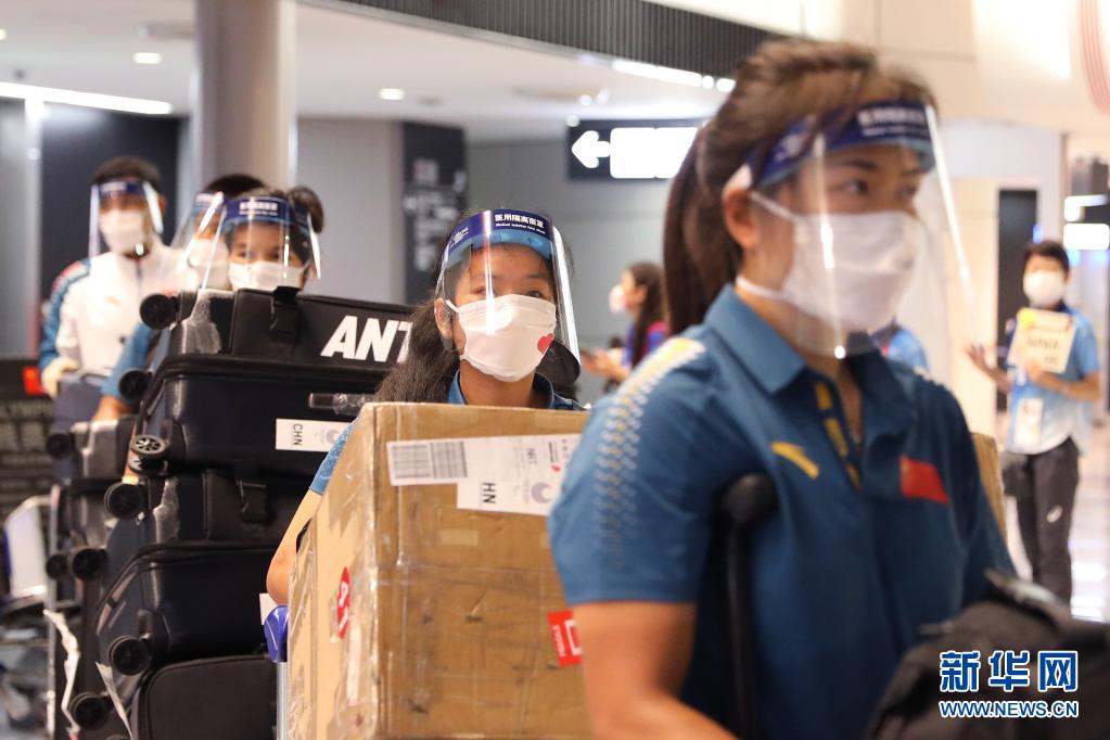 8月19日,中国残奥代表团成员抵达东京成田机场。新华社记者 杜潇逸 摄