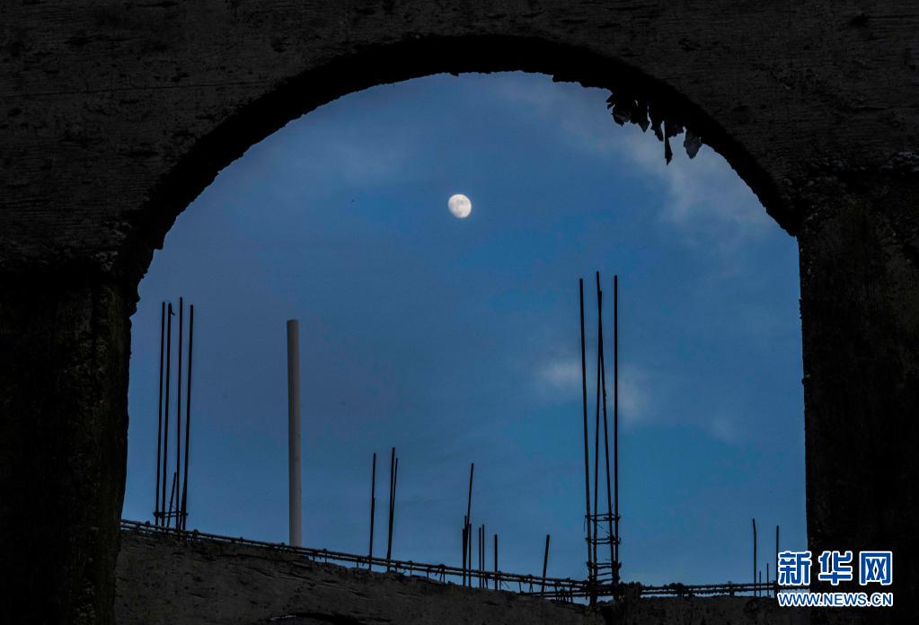 这是8月19日在海地莱凯拍摄的夜空中的月亮。