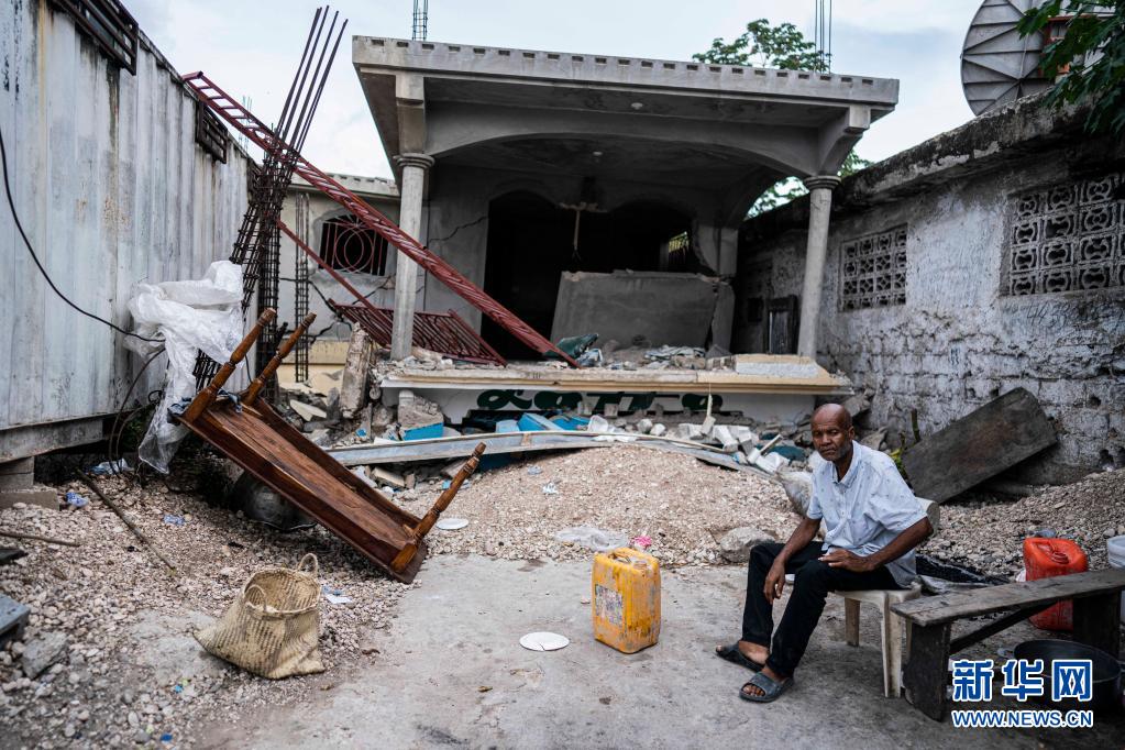 8月19日,一名男子坐在海地南部省一处破损的房屋内。