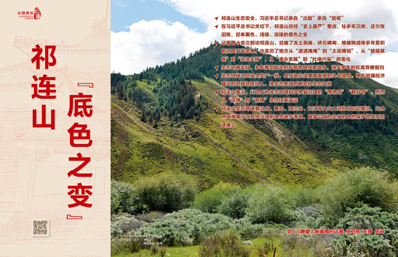 扩绿:“坚持人与自然和谐共生”祁连山如今已是中国生态环境突出问题治理领域“由乱而治”的里程碑。问责一地,警示全国。其后,秦岭、贺兰山、长江等大山大河纷纷启动整治,山水林田湖草沙冰系统治理的理念逐步落地,国家公园为主体的自然保护地体系加速建立。