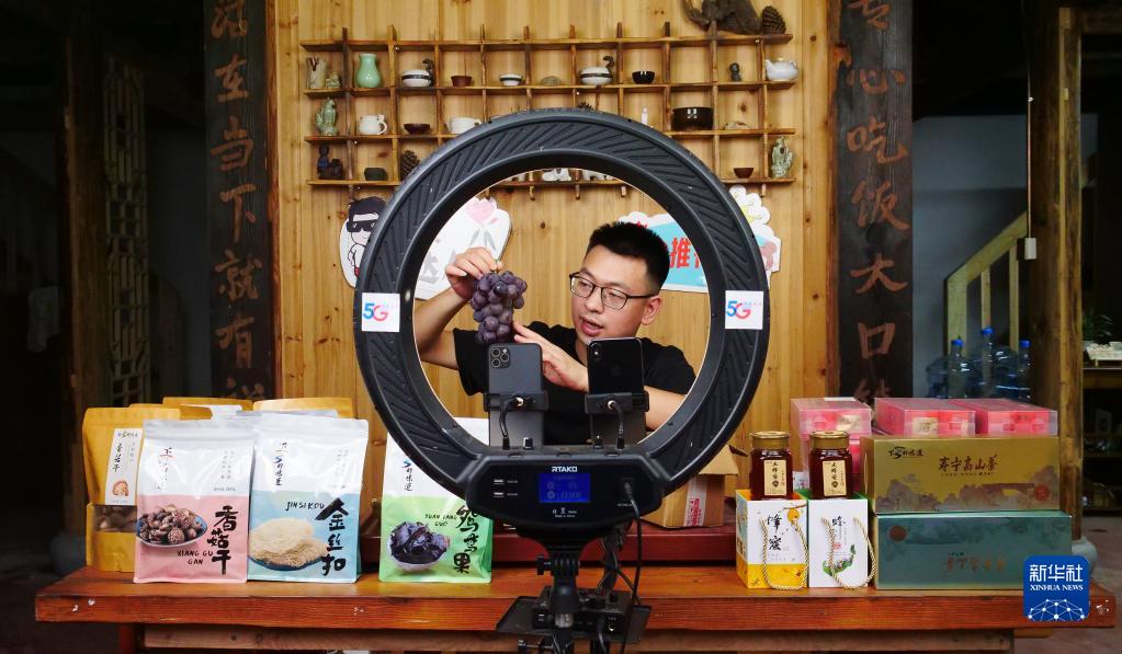 2020年,从事过电商行业的陈上友回到下党乡创建直播团队,借助直播平台销售当地的茶叶、蜂蜜等农产品。