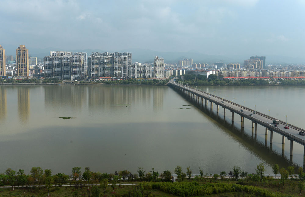 △这是今日于都河两岸风光(2016年8月11日摄)。新华社记者 万象 摄