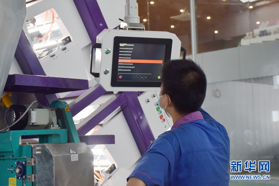 在横州市茉莉极萃园标准化厂房内,机器轰轰作响,茶企员工正在操作新购入的离地窨花设备分离花茶。