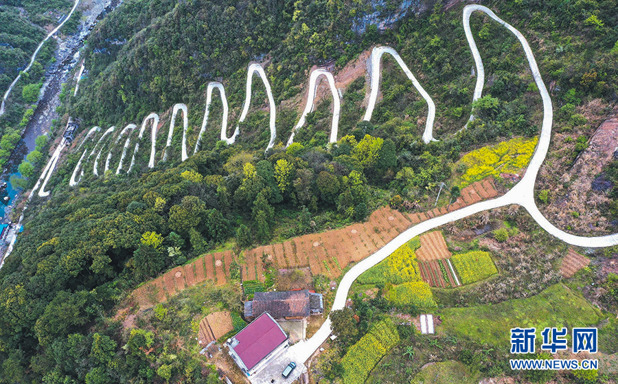 近年来,宜昌市大力建设农村“四好”公路,农村公路总里程已达3.3万公里,为当地全面建成小康社会提供了坚实保障。这些公路最大限度保持原有自然生态,随坡就势,层层迭起,“弯”转自如。在长阳县资丘镇水连村,一条路曲折上行,两边都是悬崖峭壁,2.8公里的山路有22道弯。这条路似玉带环绕,弯弯紧连,层层迭起。