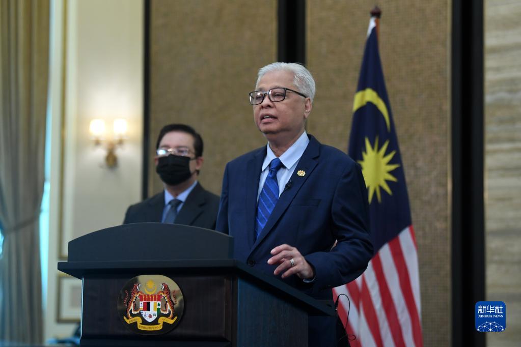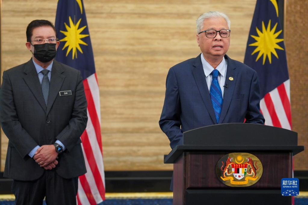 8月27日,马来西亚总理伊斯迈尔(右)宣布新内阁成员名单。新华社发(马来西亚总理府供图)