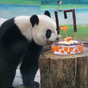 “男主角”——“团团”由于此前肠胃微恙,无福享用蛋糕,只能由大女儿“圆仔”代为品尝。园方介绍,保育员近日发现“团团”有腹痛征兆,经看诊并服用有助消化的药物后,症状已经缓解,但短时间内仍不宜摄入过多的精致食物。