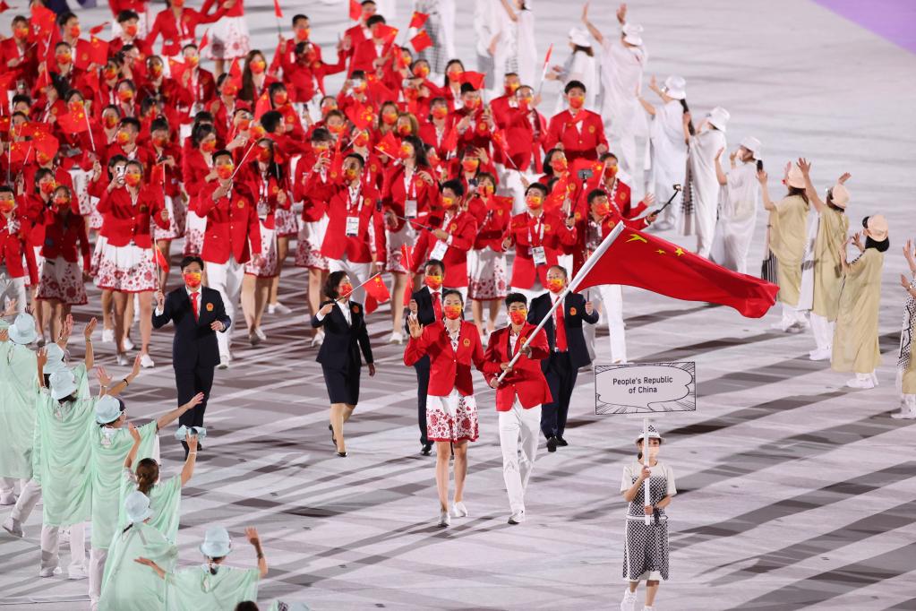 7月23日,中国体育代表团在东京奥运会开幕式上入场。(新华社记者 郑焕松 摄)