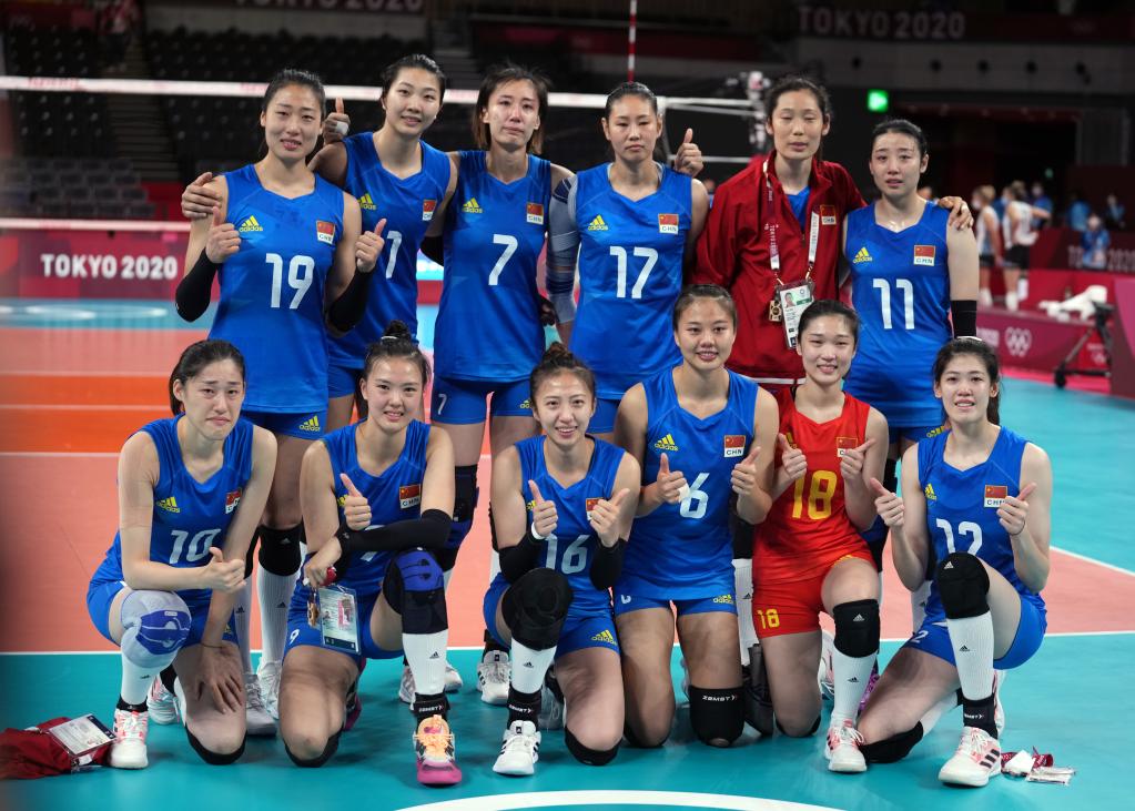 8月2日,中国女排球员在奥运会比赛后合影。(新华社记者 李尕 摄)