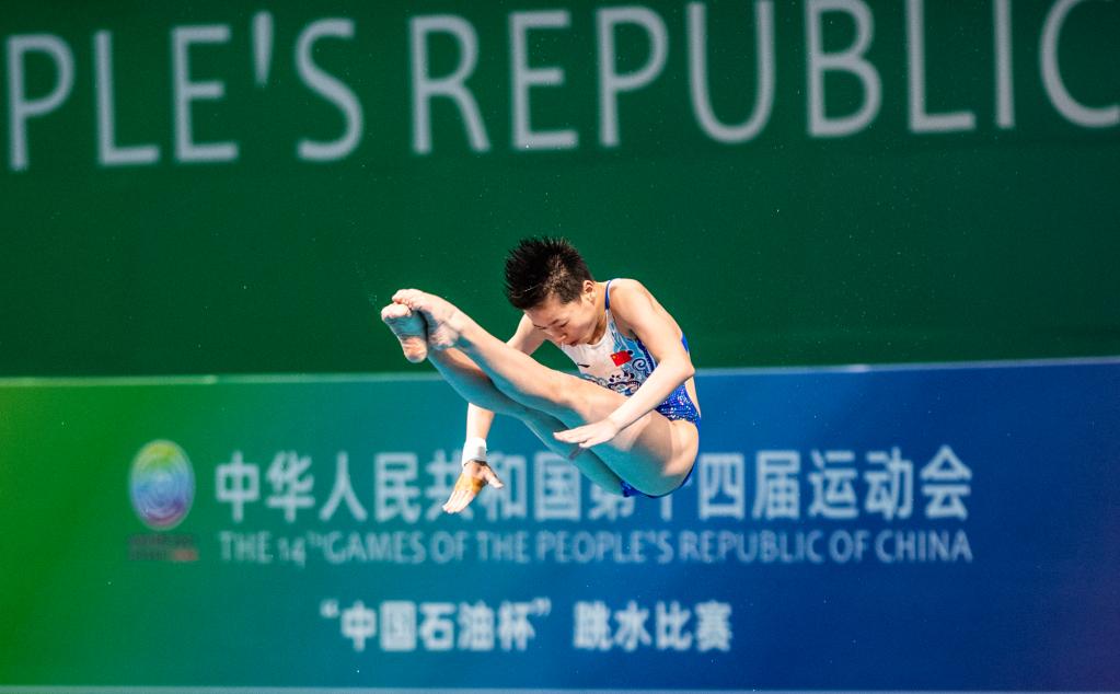全红婵在十四运会跳水比赛上再次施展“水花消失术”