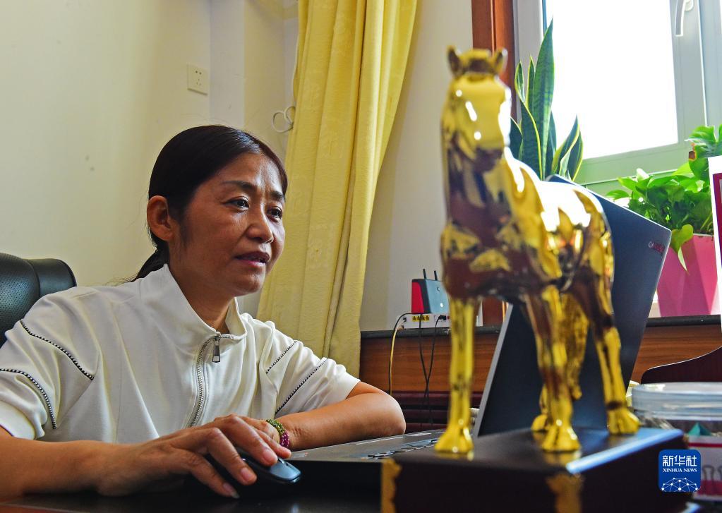 在新疆野马繁殖研究中心,工程师张赫凡在办公室整理拍摄的野马照片(8月10日摄)。 新华社记者 侯昭康 摄