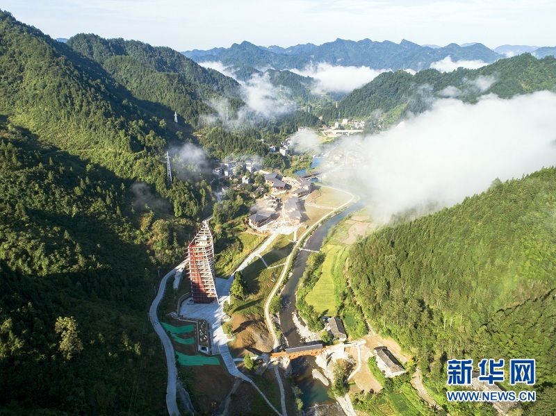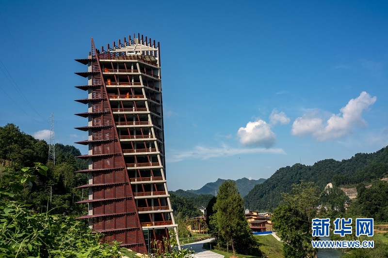 图为土家泛博物馆(彭家寨)景区里新落成的摩霄楼。新华网发 文林摄