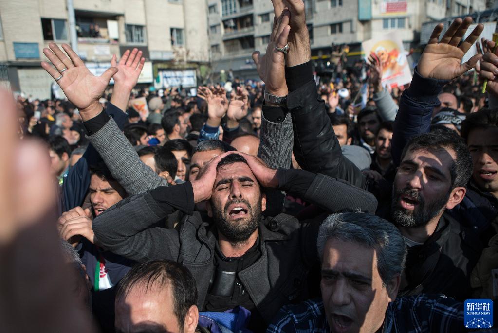 2020年1月6日,民众在伊朗首都德黑兰为苏莱曼尼送行。美军用无人机定点清除伊朗伊斯兰革命卫队“圣城旅”指挥官苏莱曼尼,严重侵犯国家主权。新华社发(艾哈迈德·哈拉比萨斯摄)