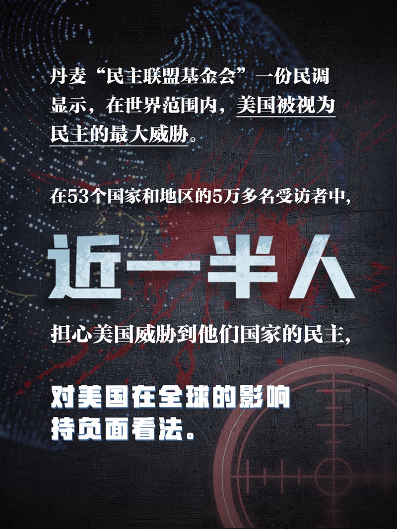 美国《外交》杂志网站刊文指出:“从新冠大流行到全球贸易规则,从气候变化到经济发展,美国正在积极阻挠世界上大多数民主国家的优先事项。在这个过程中,美国的外交政策以民主的名义加剧了全球的民主危机,使美国的权力失去了合法性。”