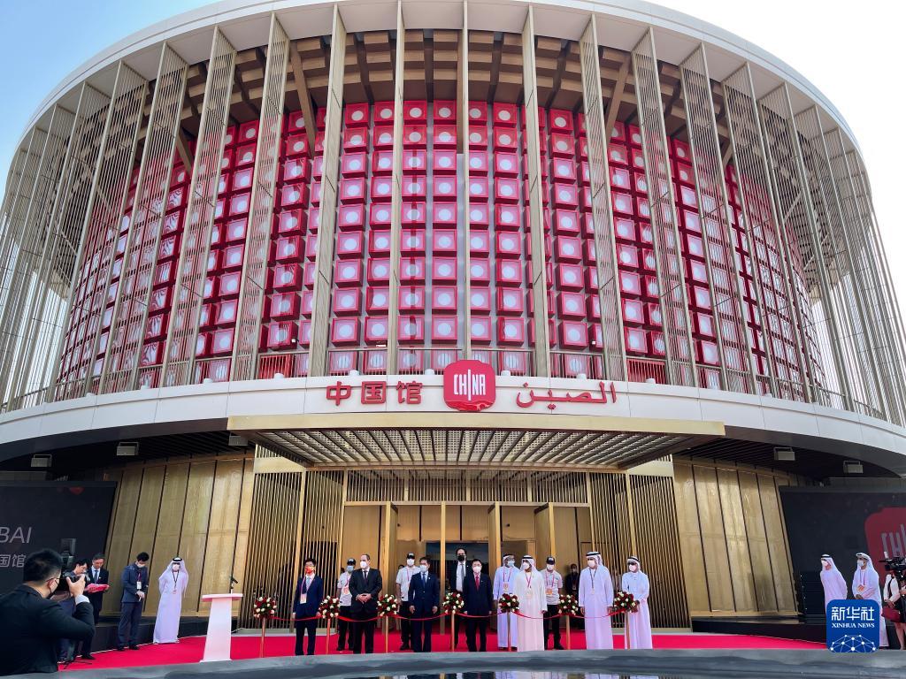 这是10月1日在阿拉伯联合酋长国迪拜拍摄的迪拜世博会中国馆开馆仪式现场。新华社记者 苏小坡 摄
