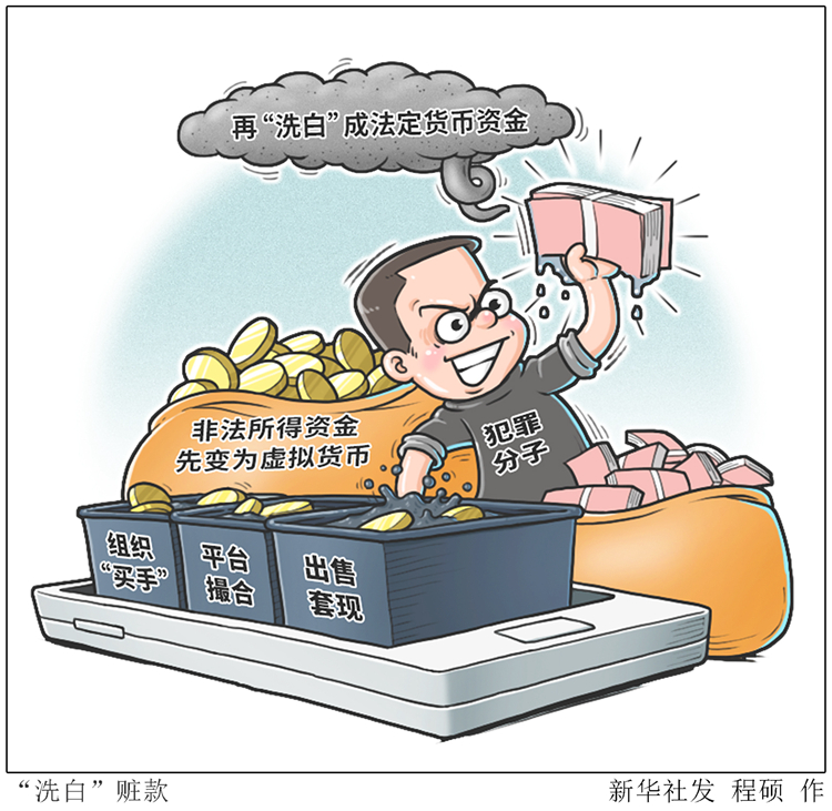 近日,中国人民银行等十部门发文,进一步防范和处置虚拟货币交易炒作风险。今年以来,公安部门打掉了多个利用虚拟货币洗钱的团伙,犯罪分子组织“买手”、平台撮合、出售套现……在这条黑色产业链上,非法所得资金先变为虚拟货币,再“洗白”成法定货币资金。