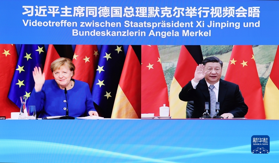 新华社北京10月13日电(记者杨依军)国家主席习近平10月13日同德国总理默克尔举行视频会晤。双方在友好的氛围中回顾近年中德、中欧关系发展并就相关问题深入交换意见。