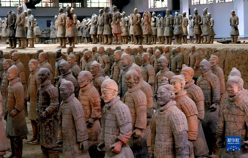 位于陕西省临潼秦始皇兵马俑博物馆一号坑内出土的陶俑(2007年5月28日摄)。新华社记者 王颂 摄