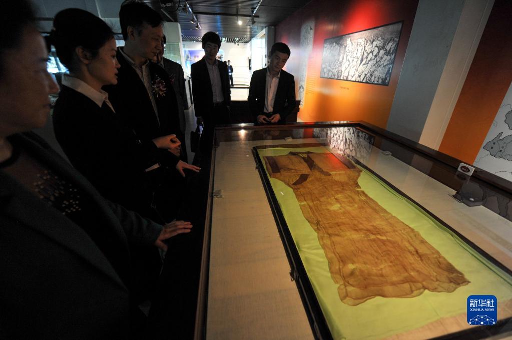 2014年3月28日,参加“马王堆汉墓文物精品展”开幕式的参观者观看展出文物“素纱襌衣”。新华社记者 白禹 摄