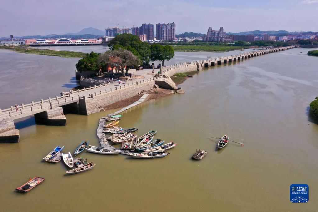 这是7月9日拍摄的泉州洛阳桥(无人机照片)。洛阳桥是由宋代官方主持建造的大型跨海石桥,始建于1053年,至今保存完好。新华社记者 姜克红 摄