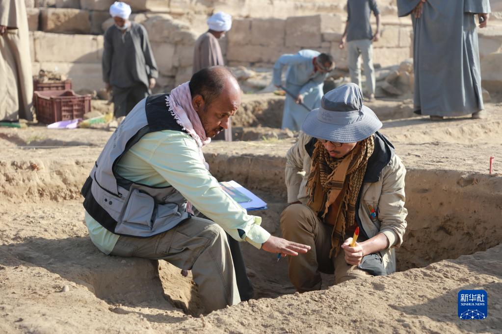 2019年12月14日,在埃及卢克索,中埃卢克索孟图神庙联合考古项目成员在现场工作。新华社发