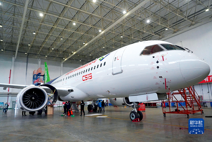 中国商飞C919大型客机外场试验队南昌基地,技术人员正在对一架客机进行检测(2020年2月26日摄)。 新华社记者 万象 摄