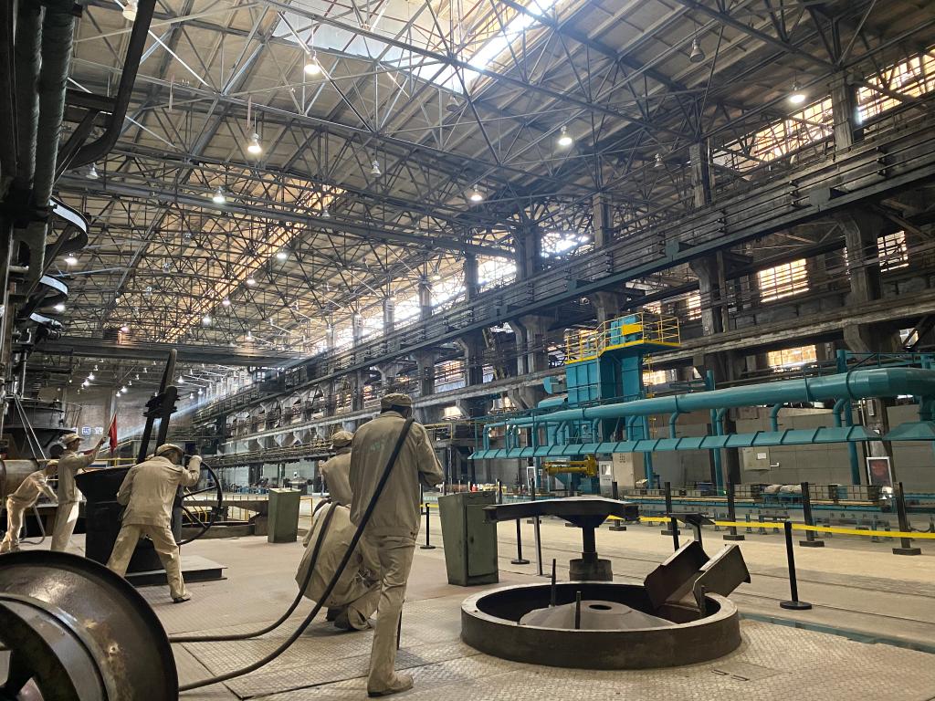 如今,铸造馆内保留了全套的铸造设备。“退休”的冲天炉、10吨天吊运输轨道和铸造厂房重新“营业”,向游客展现磅礴的工业之美。许多人慕名前来,漫步于“钢铁巨兽”之间,在具有年代感的厂房里,品味大国重器背后的时代气息。