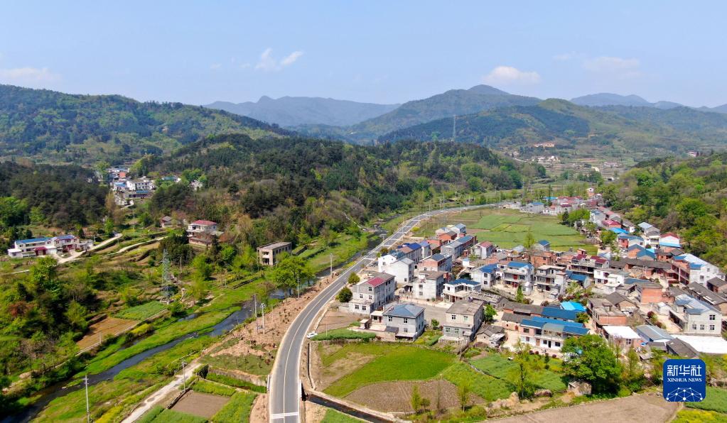这是4月9日在新县郭家河乡拍摄的乡村景色(无人机照片)。新华社发