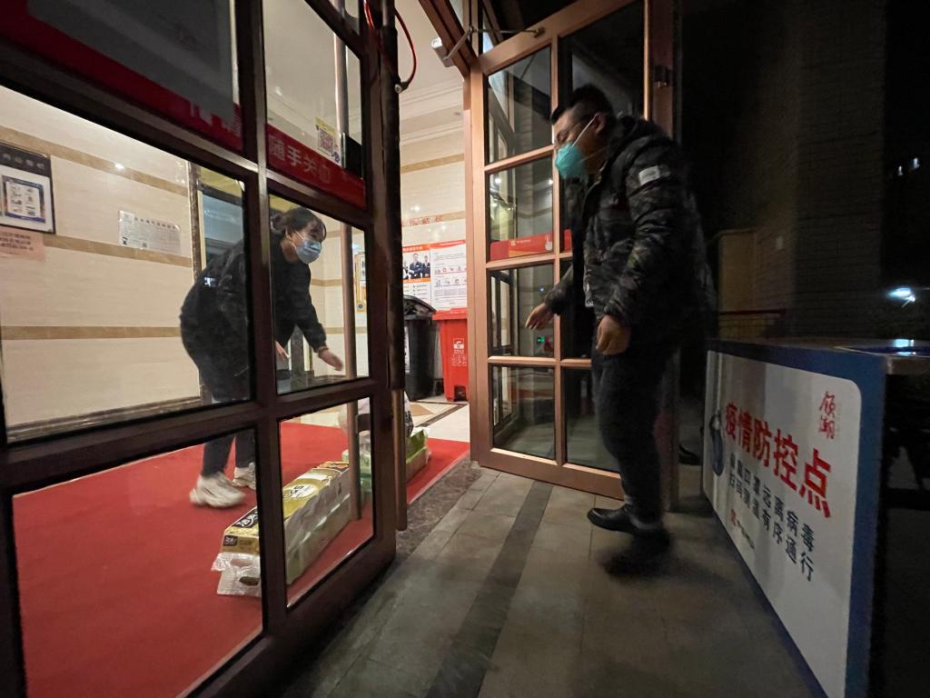 马晓军在为居民递送生活用品。新华社记者苏醒 摄