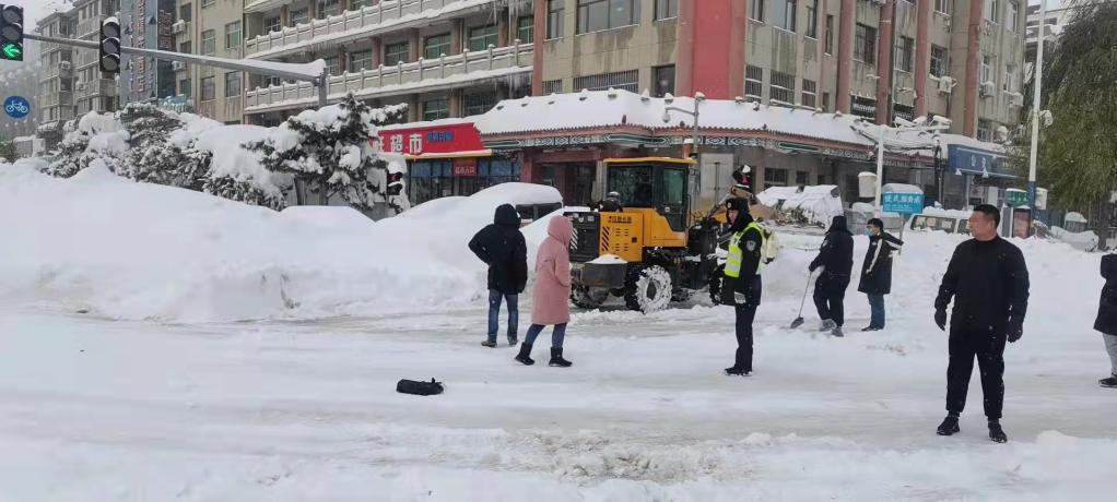 11月9日上午,通辽市科尔沁区城区主干道的清理已有新进展,可供小汽车通行。(通辽市公安局交管支队供图)