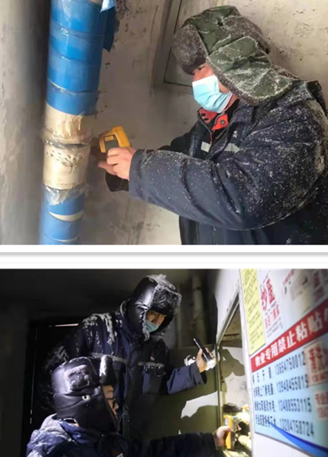 工作人员加密居民楼供水温度监测。(拼版图片,通辽热电有限责任公司供图)