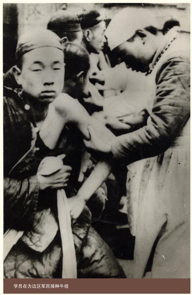 中国医科大学学员在为边区军民接种牛痘疫苗。(中国医科大学供图)