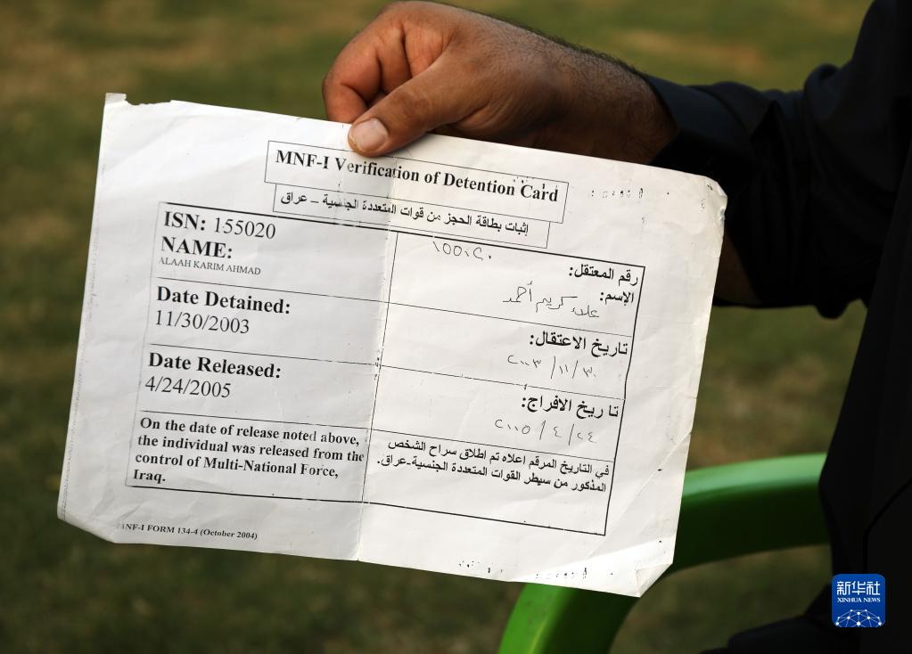 随后,我被转移到伊拉克最大的监狱布卡营。在这里,更多的伊拉克人被关押。前后被关押两年半时间后,我拿到一纸证明被无罪释放,至今我还保留着这张证明。