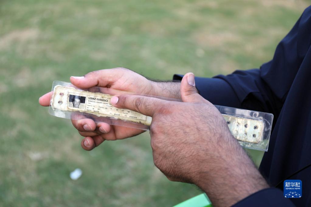 在伊拉克萨拉赫丁省杜鲁亚镇,阿拉·卡里姆·艾哈迈德展示被美军监禁时佩戴的手环(11月2日摄)。新华社发