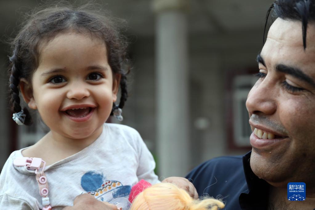 在伊拉克萨拉赫丁省杜鲁亚镇,阿拉·卡里姆·艾哈迈德和女儿玩耍(11月2日摄)。新华社发