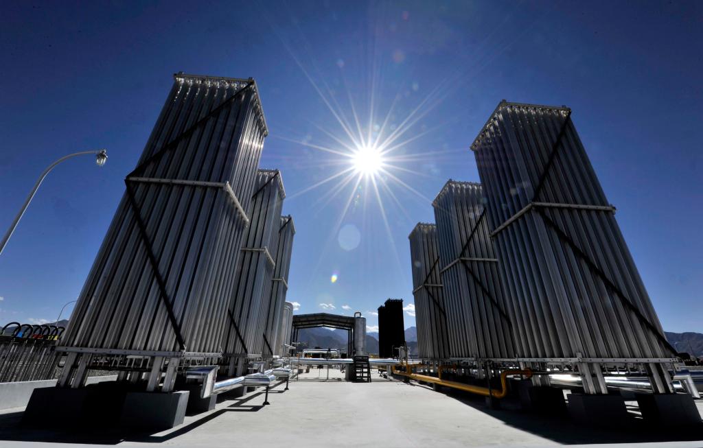 西藏拉萨天然气站的空温式汽化器(2011年10月26日摄)。 新华社记者 陶希夷 摄