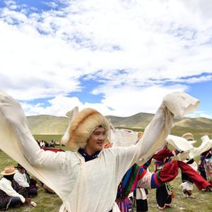 西藏班戈县青龙乡牧民在草原上跳舞(2021年7月15日摄)。 新华社记者 觉果 摄