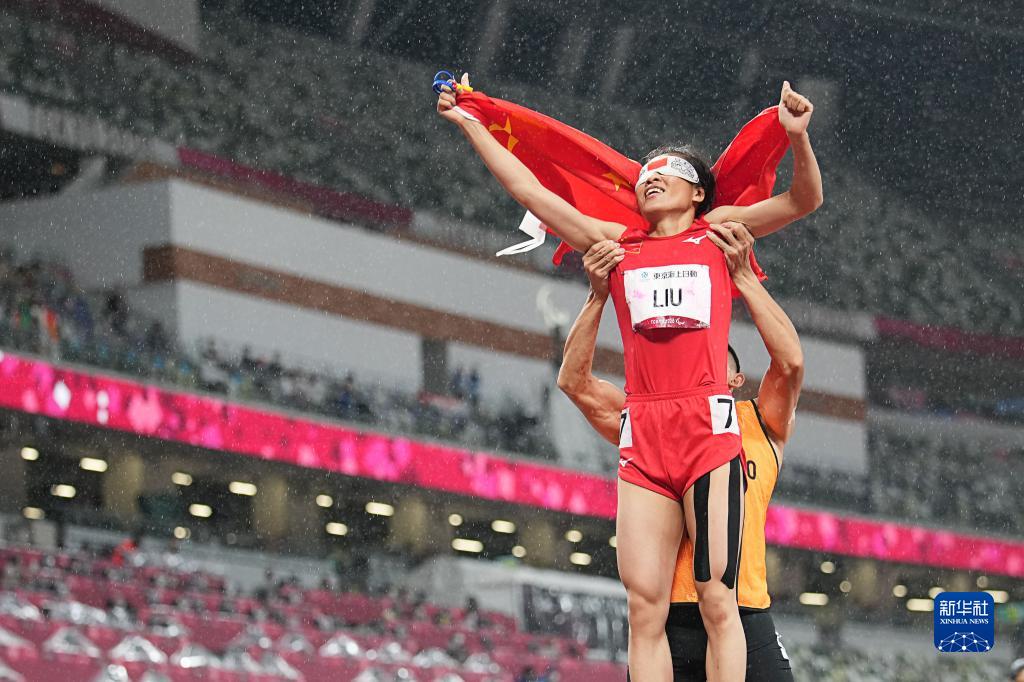 9月4日,在东京残奥会田径女子200米T11级决赛中,中国选手刘翠青获得金牌。新华社记者熊琦摄