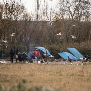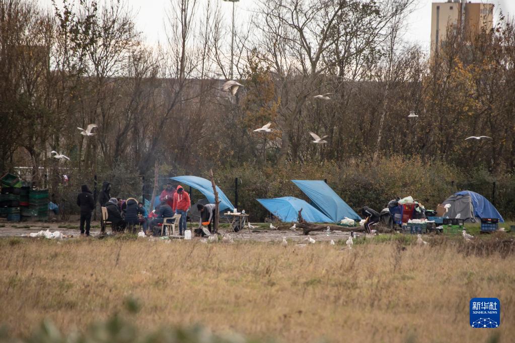 这是11月26日在法国北部加来港附近拍摄的非法移民。新华社发