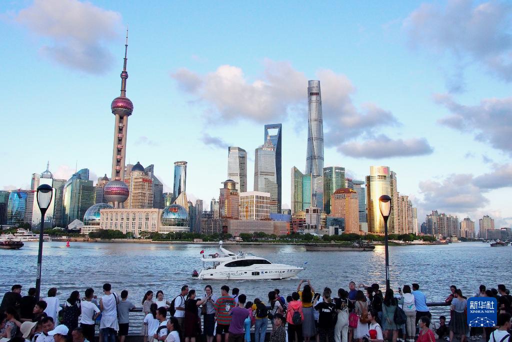 游客在上海外滩欣赏浦东陆家嘴景色(2019年8月2日摄)。新华社记者 陈飞 摄
