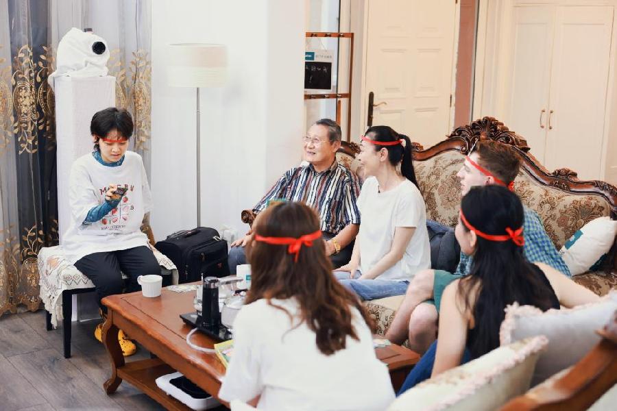 在同一屋檐下,年轻人与老人一起做“不要做挑战”的游戏。受访者供图