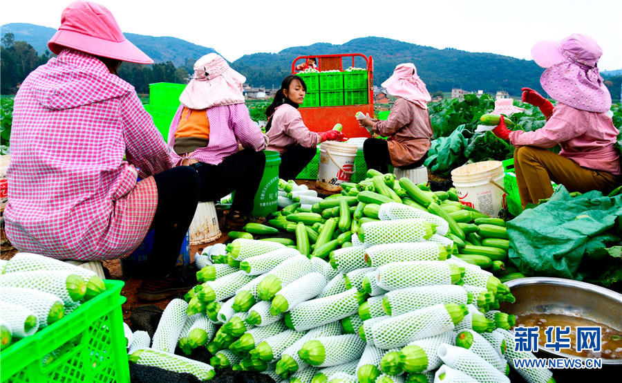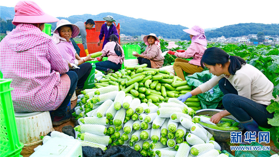 连日来,云南省弥勒市巡检司镇宣武村委会的村民们正忙着采收西葫芦。近年来,巡检司镇大力发展冬季蔬菜西葫芦种植,打造核心区示范样板1000亩。入冬以来,当地种植的西葫芦大量上市,俏销市场,成为农民增收的有效渠道。新华网发(普佳勇摄影报道)