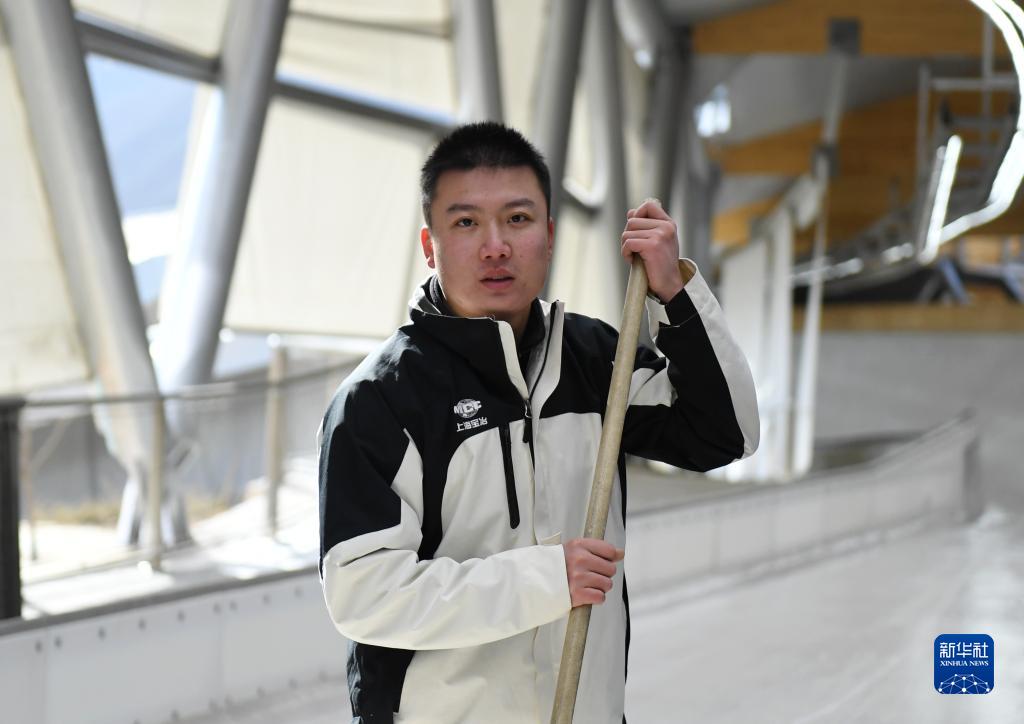 凌晨五点半,山野无声。国家雪车雪橇中心制冰队副队长朱永涛穿着冲锋衣,脚踩冰爪,手握修冰刀,迎着零下20摄氏度的山风,紧贴着冰面,把赛道平整度和光滑度手工打磨至最佳状态。