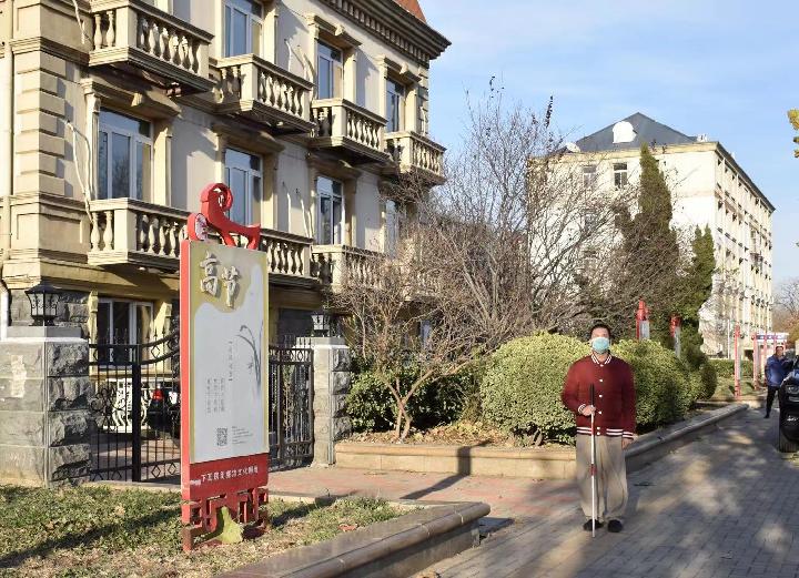 工作之余,穆怀鹏沿着盲道散步。新华社记者 张宇琪 摄