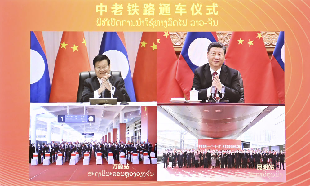 12月3日下午,中共中央总书记、国家主席习近平在北京同老挝人民革命党中央总书记、国家主席通伦通过视频连线共同出席中老铁路通车仪式。