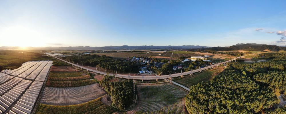 ↑这是2021年9月10日拍摄的中国云南省景洪市中老铁路路段(无人机全景照片)。